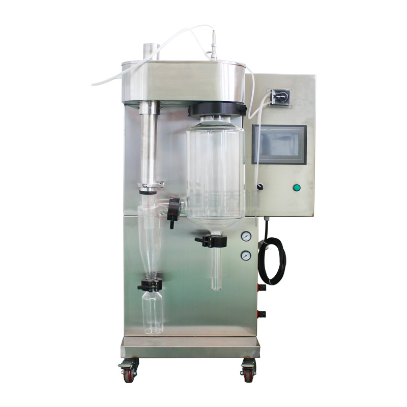 小型 實(shí)驗(yàn)型 微型噴霧干燥機(jī)(噴霧干燥儀/噴霧干燥機(jī))及其主要適用于高校、研究所和食品醫(yī)藥化工企業(yè)實(shí)驗(yàn)室生產(chǎn)微量顆粒粉末,對(duì)所有溶液如乳濁液、懸浮液具有廣譜適用性, 適用于對(duì)熱敏感性物的干燥如生物制品、生物農(nóng)藥、酶制劑等,因所噴出的物料只是在噴成霧狀大小顆粒時(shí)才受到高溫,故只是瞬間受熱,能保持這些活性材料在干燥后仍維持其活性成份不受破壞。二、實(shí)驗(yàn)型噴霧干燥機(jī)特點(diǎn):